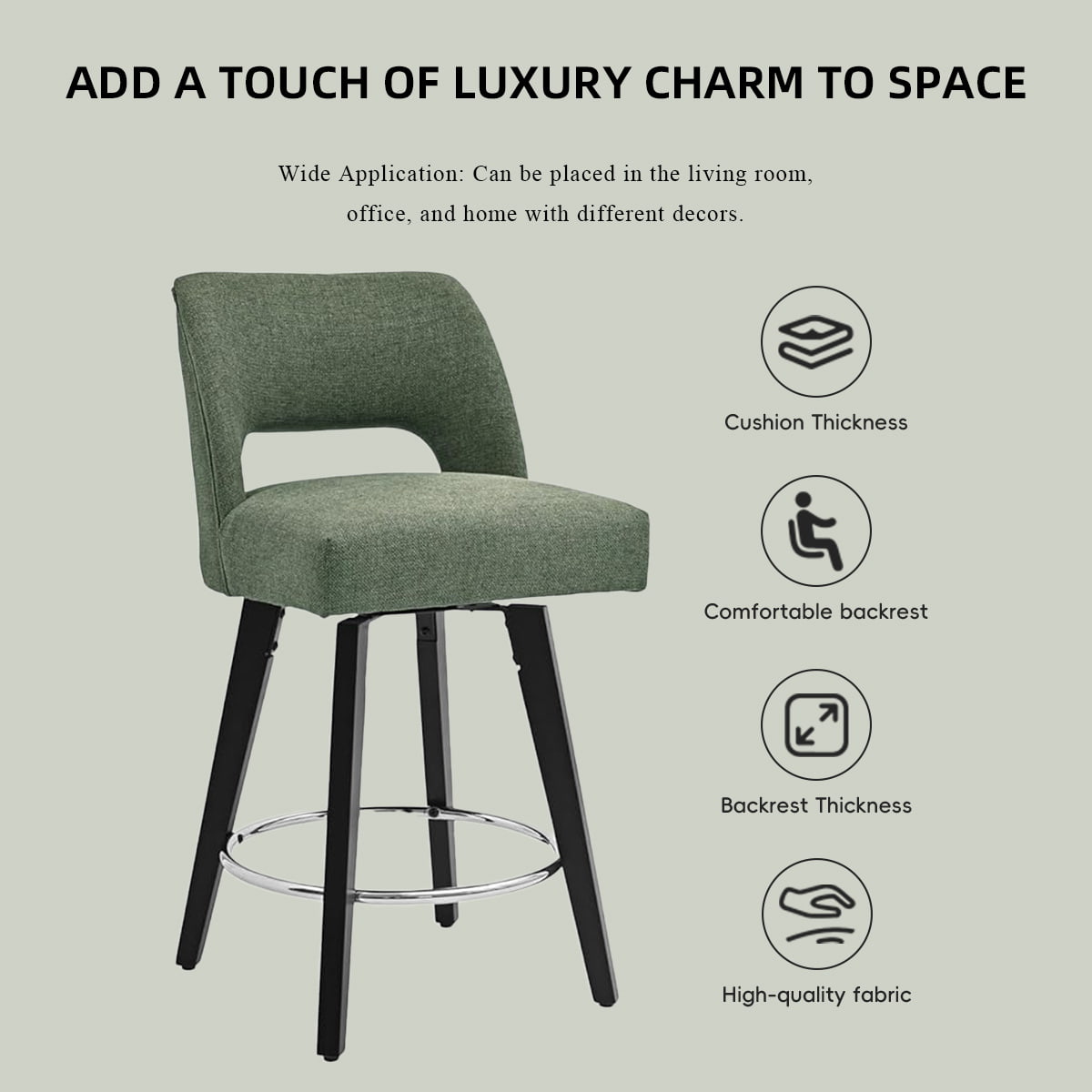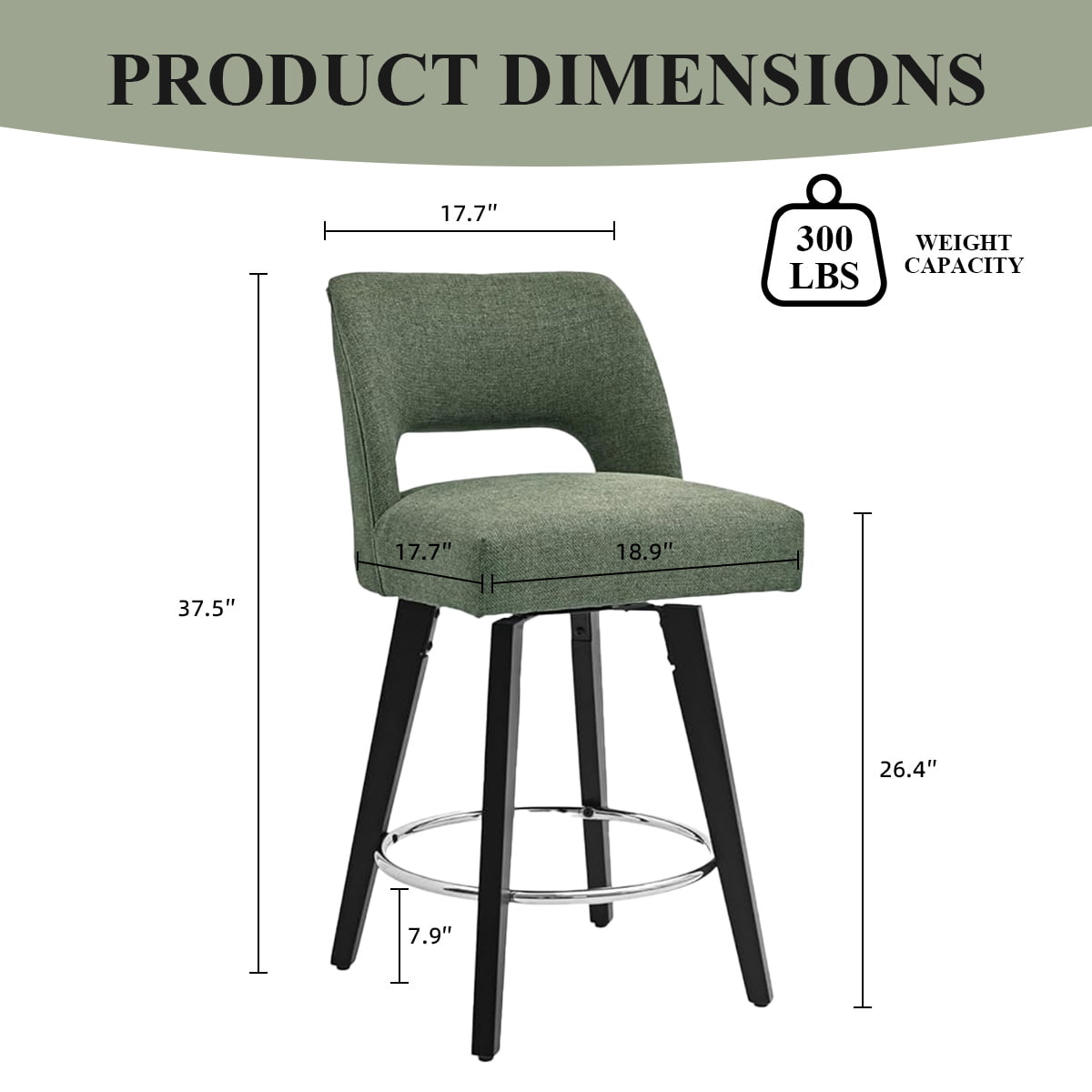 Modern Green Swivel Counter Height Bar Stool dengan Backrest dan Logam Legs | Kerusi bar linen upholstered untuk pub dapur pulau & rumah