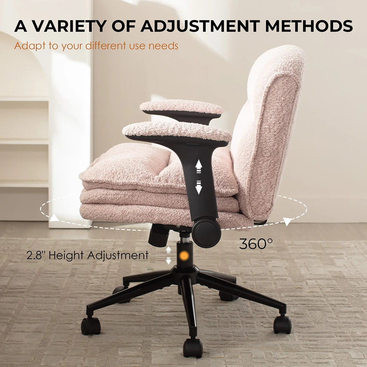 ② Kerusi Meja Bersila Ergonomik dengan Tempat Letak Tangan Boleh Laras, Kusyen Pusing & Tebal 360° — Kerusi Pejabat Rumah Bouclé