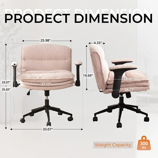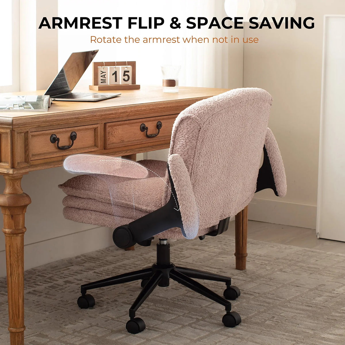 ① Kerusi Pejabat Salib Silang dengan Lengan Flip-Up & Kusyen 3 Lapisan — Kerusi Meja Bouclé Ergonomik Tempat Duduk Lebar dengan Roda