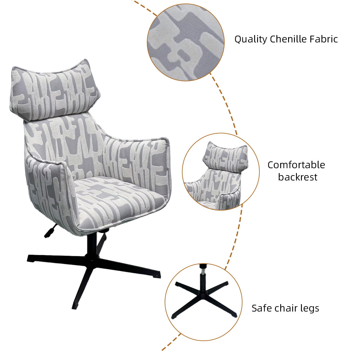 Kerusi swivel yang boleh laras kami direka untuk dalaman moden-menggabungkan keselesaan ergonomik, pangkalan logam tahan lama, dan upholsteri chenille mewah. Sesuai untuk ruang tamu, pejabat, hotel, dan lounge, mereka menyampaikan kedua -dua kepraktisan dan estetika halus.