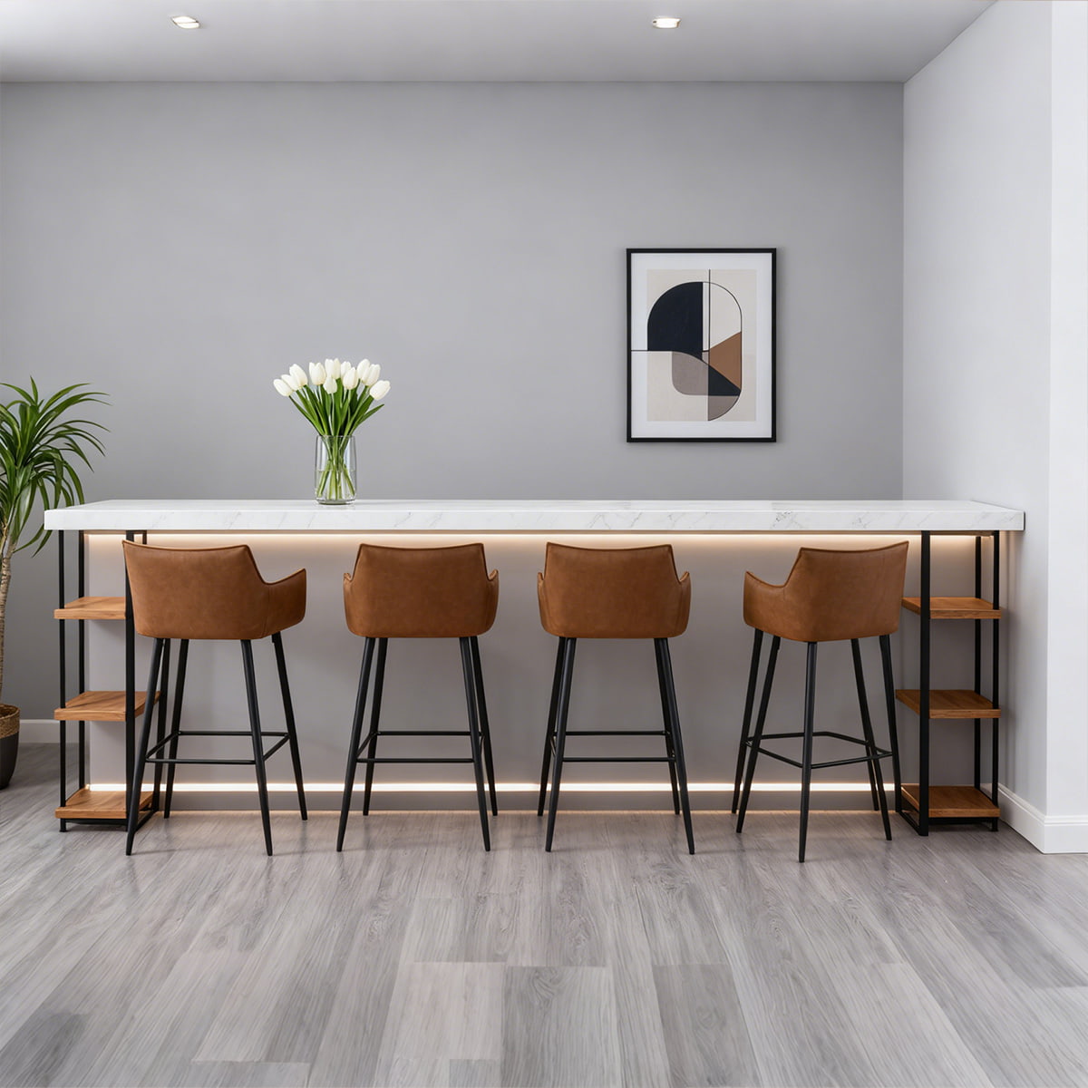 Siluet minimalis dan kaki hitam matte melengkapkan kedua -dua dalaman kediaman dan komersial - dari pulau -pulau dapur ke bar kelas atas. Dengan pangkalan logam yang kukuh dan pad anti-slip, setiap najis menawarkan pengalaman tempat duduk yang selamat dengan kapasiti berat 300 lbs. Sama ada untuk rumah moden, restoran butik, atau kaunter bar, najis ini membawa kecanggihan yang tidak berkesudahan ke setiap suasana.